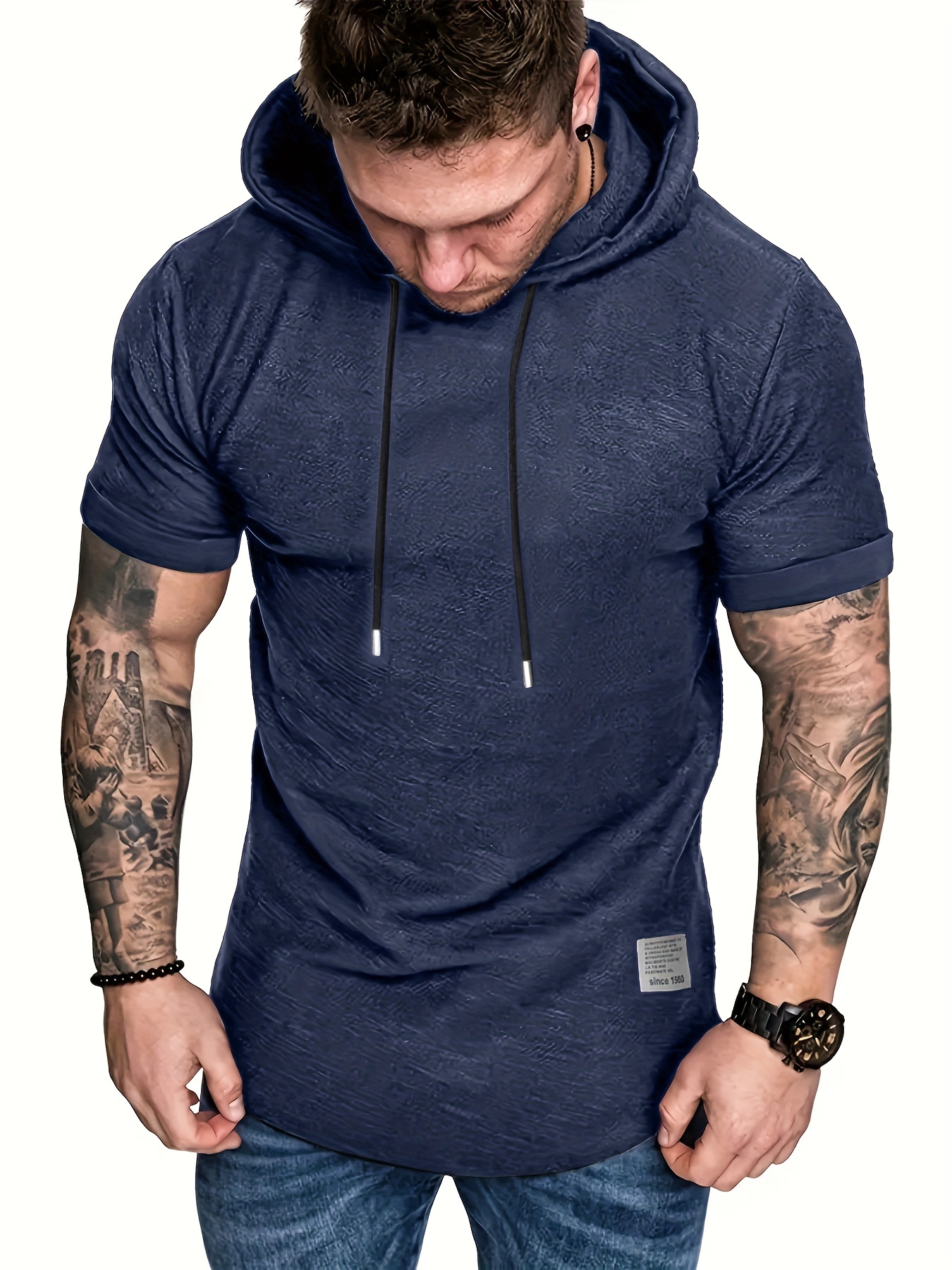 Plus Size Men's Basic Short Sleeve Hooded T-shirt, Summer Comfy Tops With Drawstring