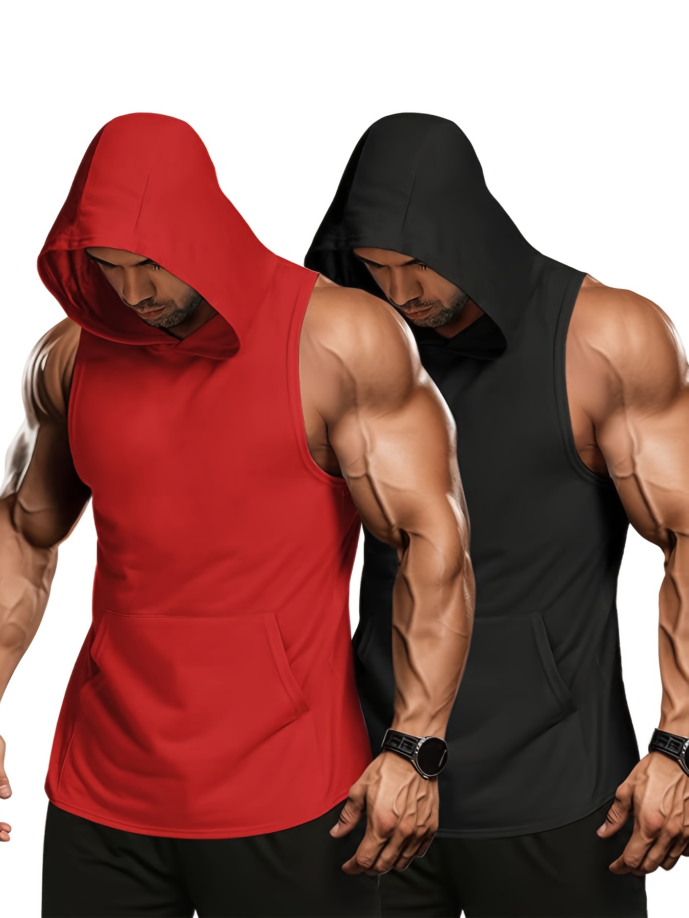 Men's Training Hooded Tank Top Set, Casual Comfy Vest Shirts For Summer, Men's Clothing Top For Gym Fitness