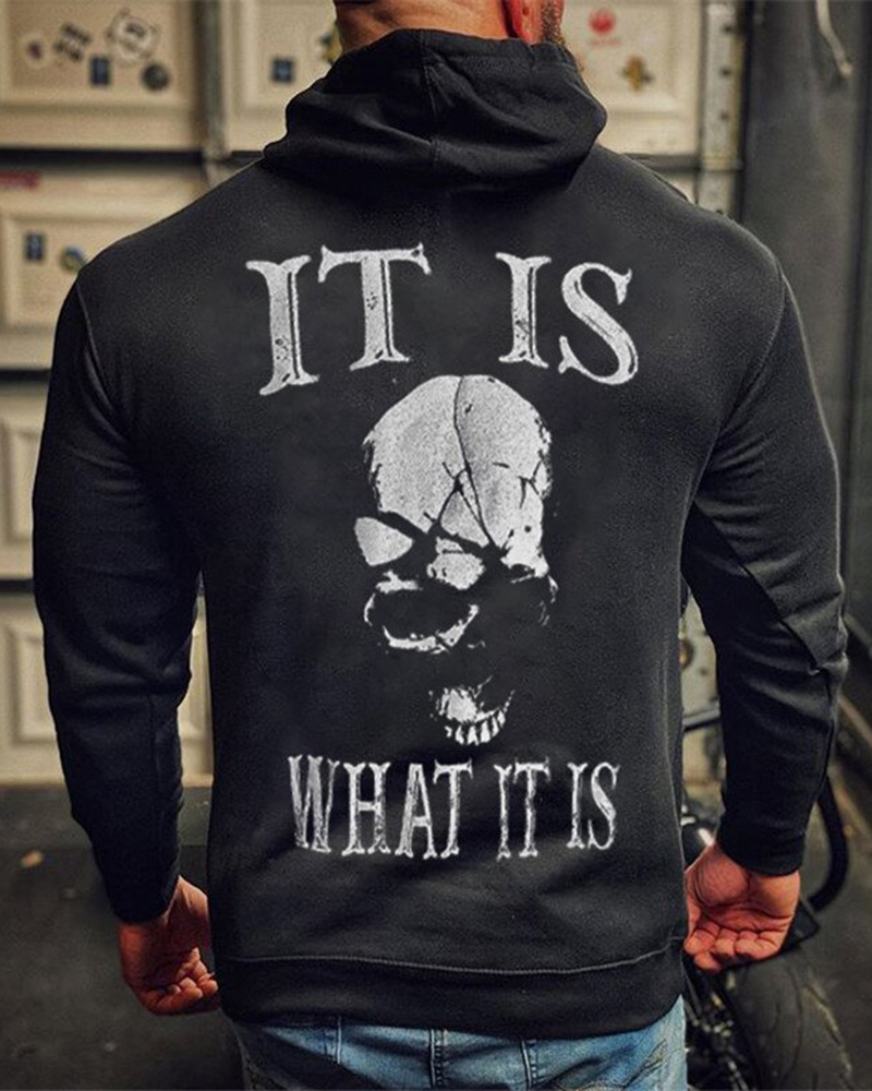Casual it is what it is printed long-sleeved men's hooded sweater