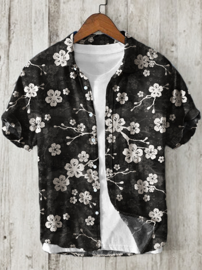 Cherry Blossom Japanese Pattern Linen Blend Shirt