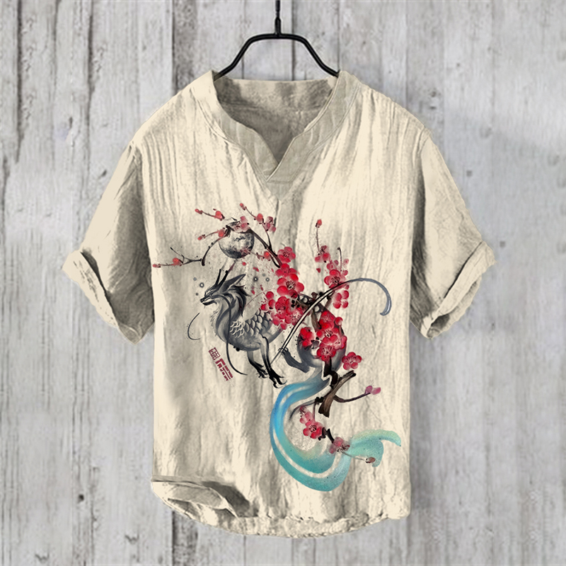 Dragon Japanese Art Linen Blend Shirt