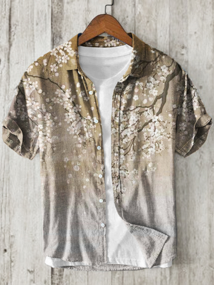 Falling Cherry Blossom Japanese Art Gradient Linen Blend Shirt