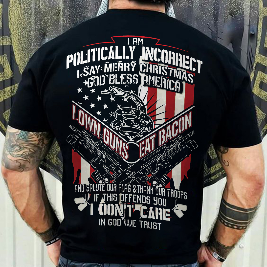 I Am Politically Incorrect I Say Merry Christmas, God Bless Print Men's Short Sleeve T-Shirt