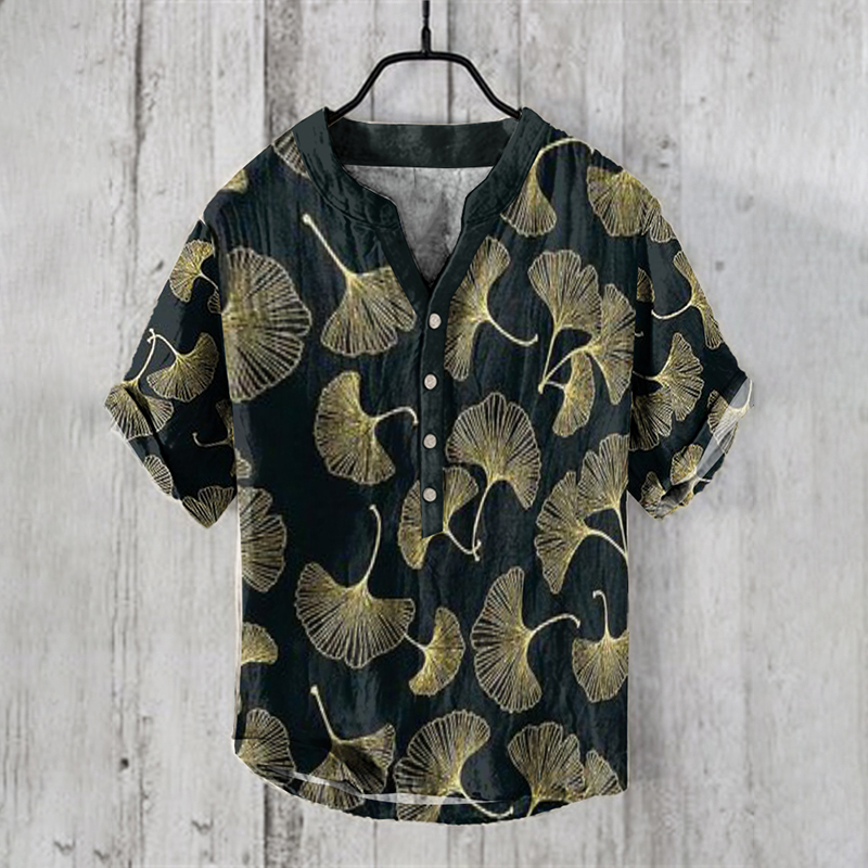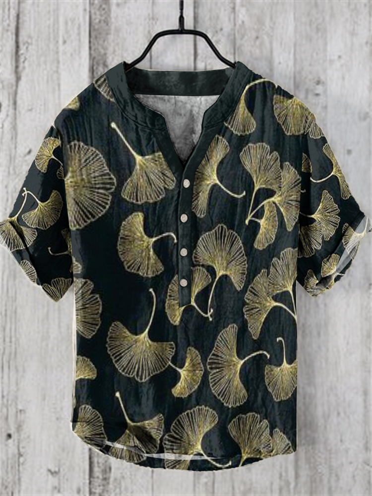 Japanese Ink Painting Of Ginkgo Art Linen Blend Cozy Shirt