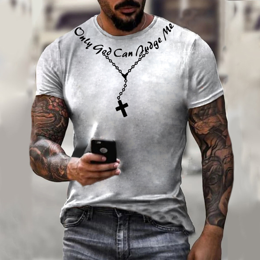 Jesus Necklace Print Short Sleeve T-shirt