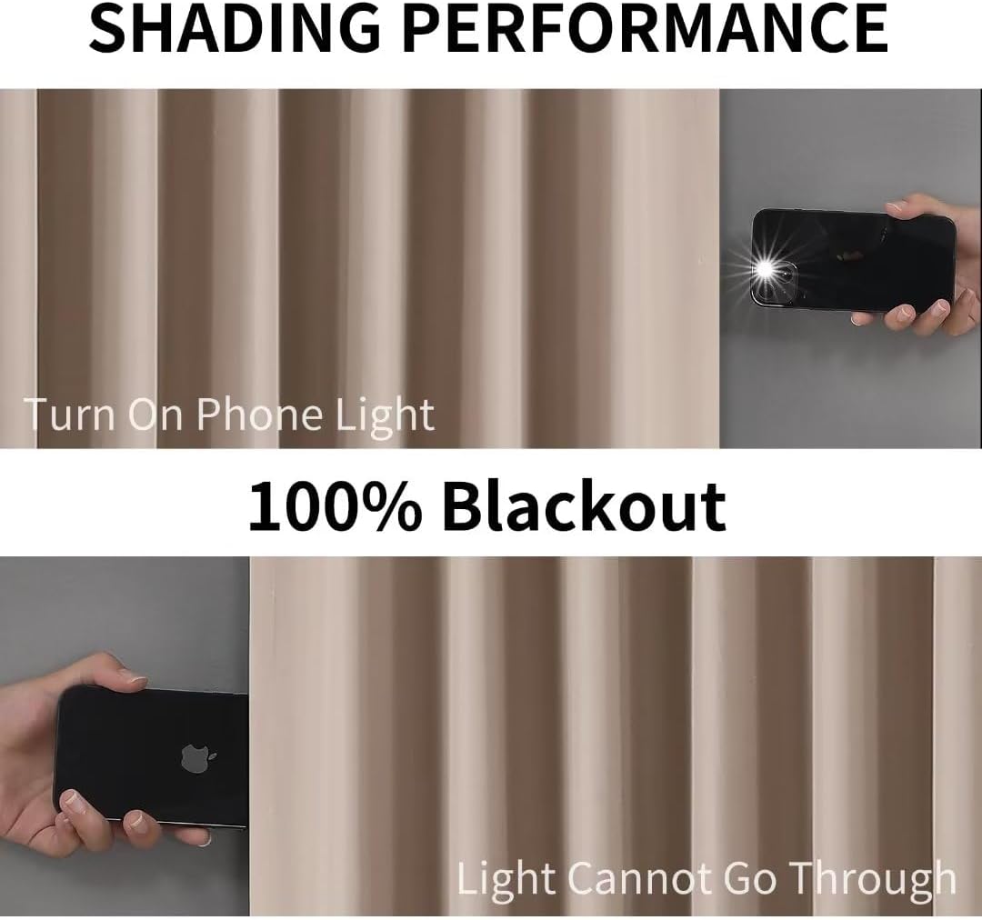 - ��Total Blackout��Joydeco curtains are a high-quality curtain with 100% blackout property. It adopts advanced blackout materials and production techniques, which can completely block external light penetration, providing excellent light control and privacy protection for you. Whether it is the intense sunlight during the day or the busy street lights, Joydeco curtains can effectively shield them, creating a dark, comfortable, and relaxing space.