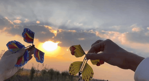The wings of the butterfly are made of paper, and the body is made of plastic and rubber bands. It has excellent elasticity. Rotate the rubber band clockwise or counterclockwise, and the butterfly will fly in different directions.