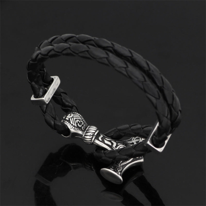 Men's Alloy Leather Design Thor's Hammer Bracelet