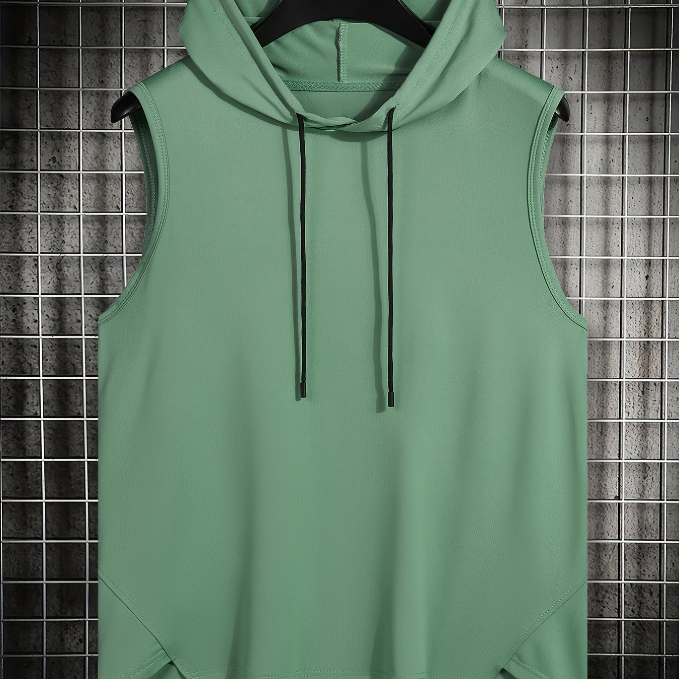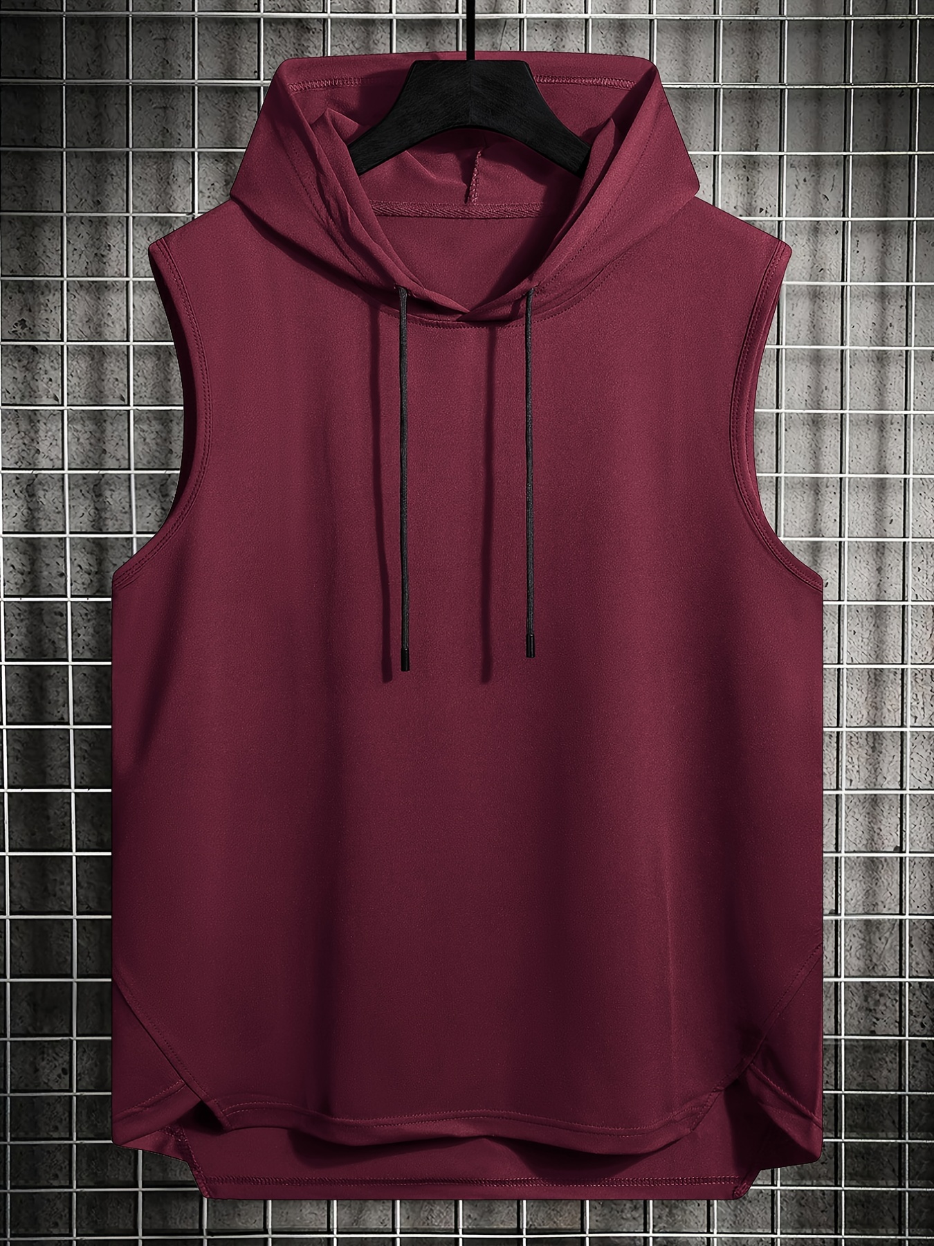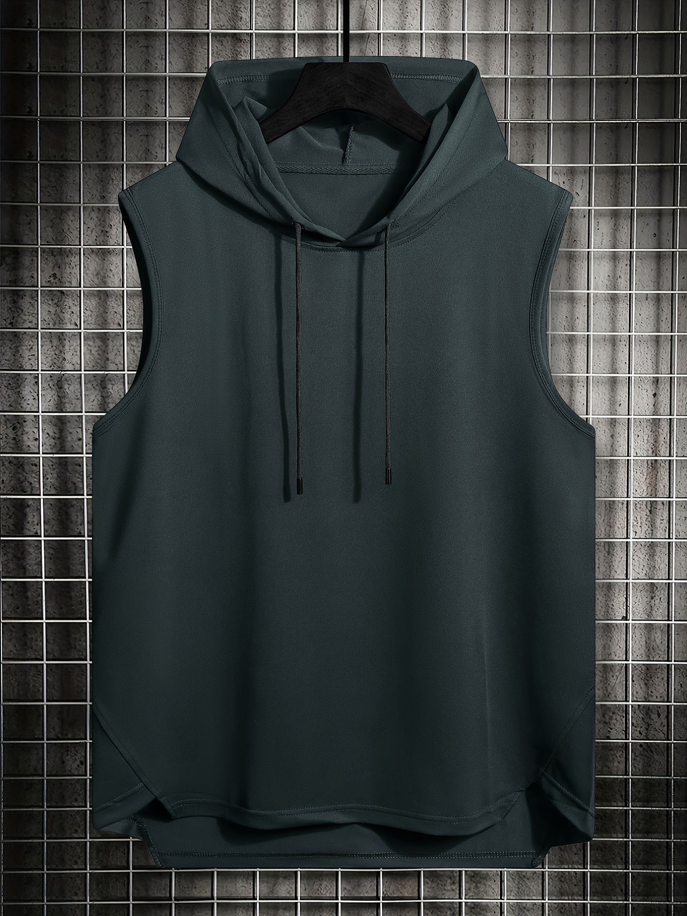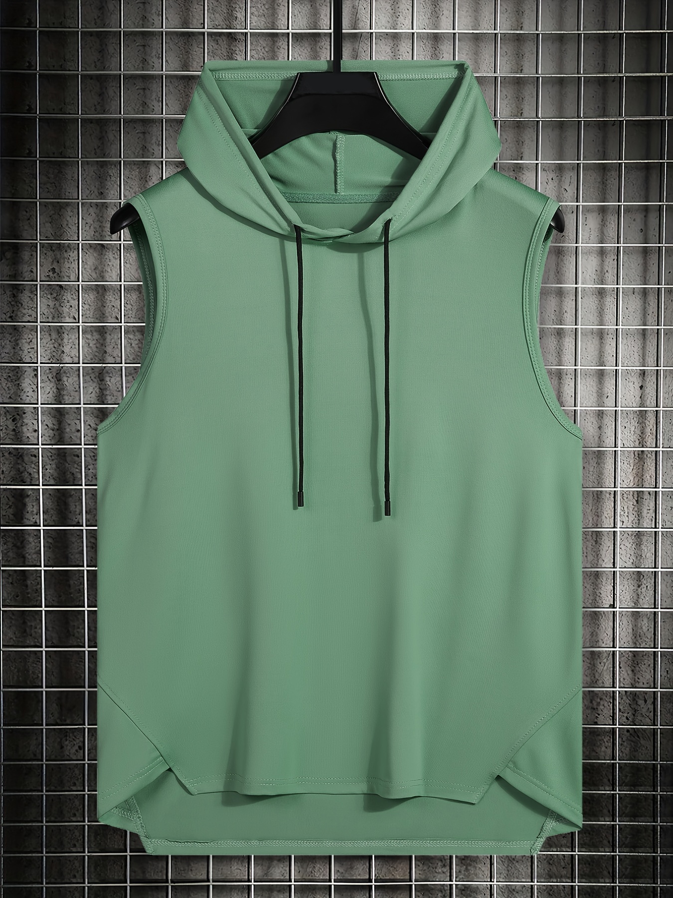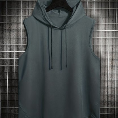 Mens Basic Slightly Stretch Hooded Sleeveless Drawstring Vest, Male Clothes For Summer