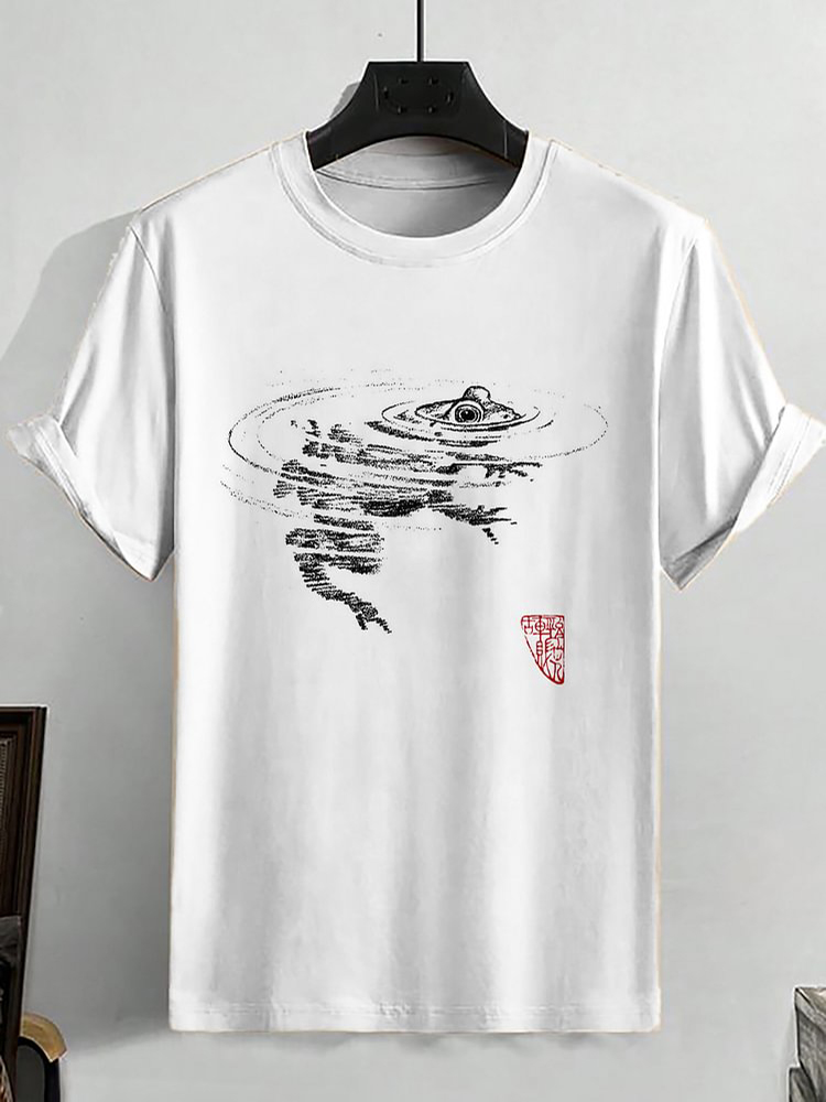 Men's Casual Frog In Water Ripple Art Drawing Printed T-Shirt