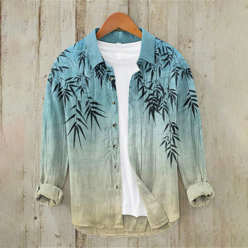 Men's Japanese Art Bamboo Button Down Cotton Linen Shirt