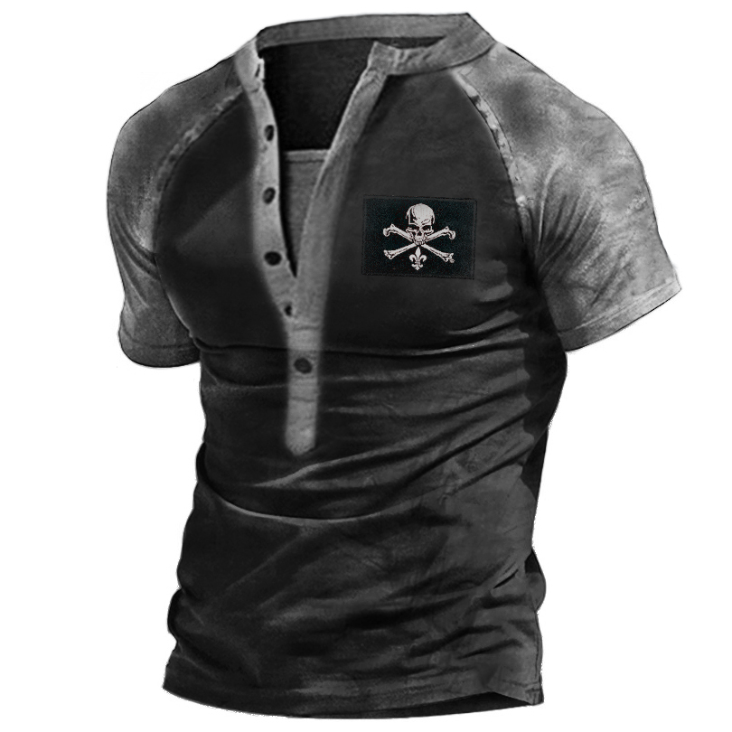Men's Outdoor Skull Print Casual Henley T-Shirt