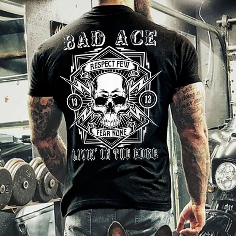 Men's Retro BAD ACE Motorcycling Printed T-Shirt