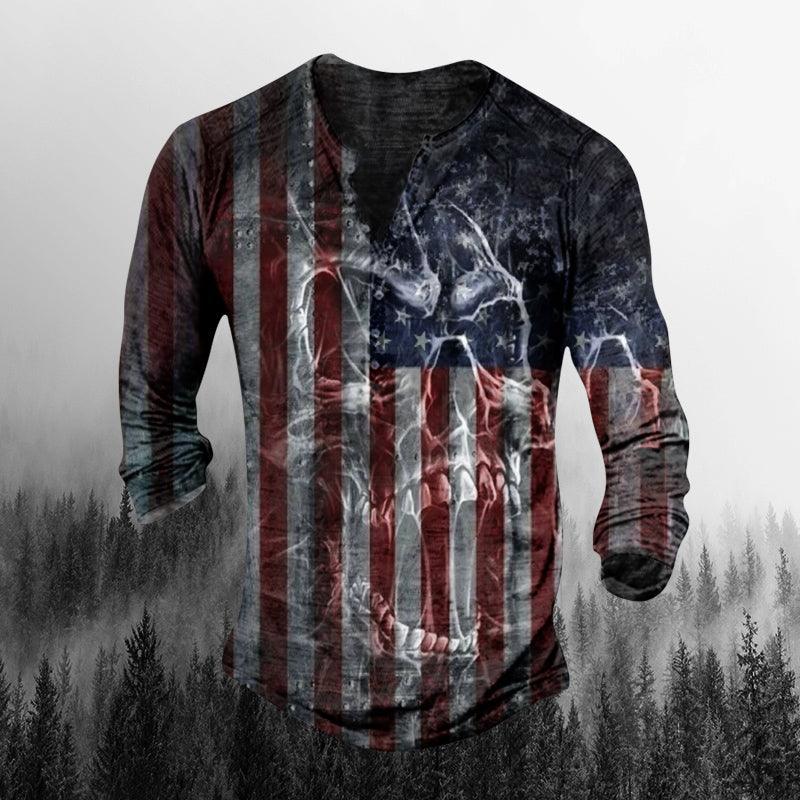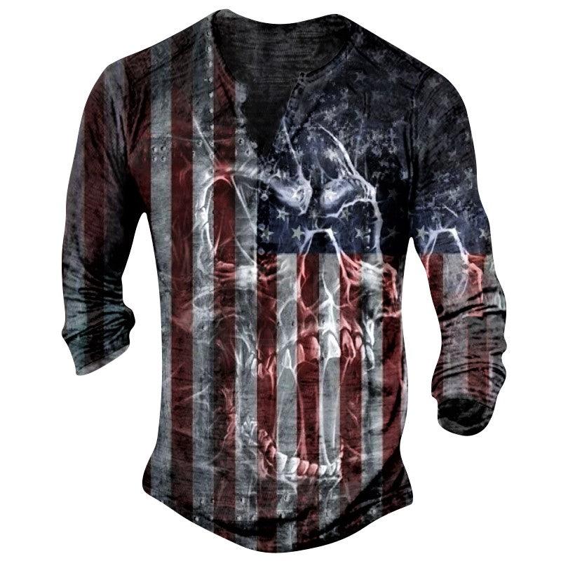 Mens Retro Comfortable National Retro Skull Long Sleeve