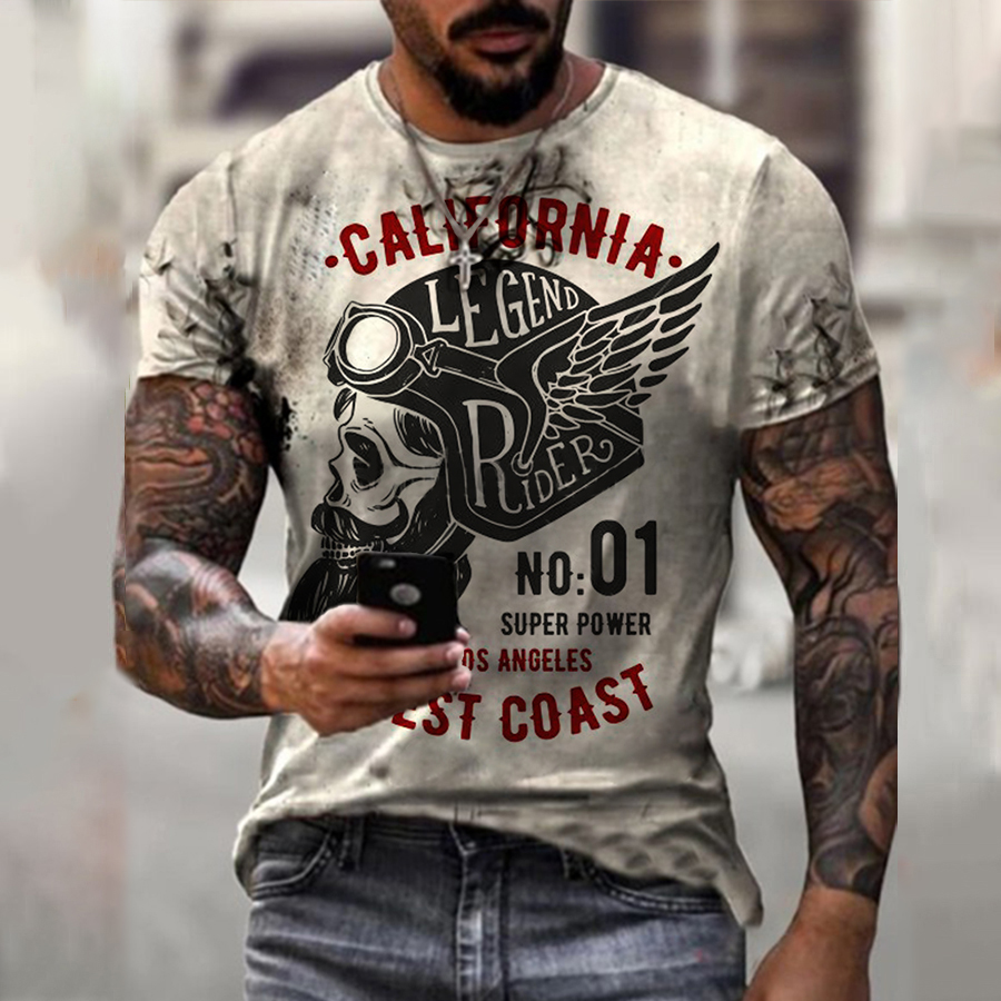 Retro Motorcycle Legend Riders Print Short Sleeve T-shirt