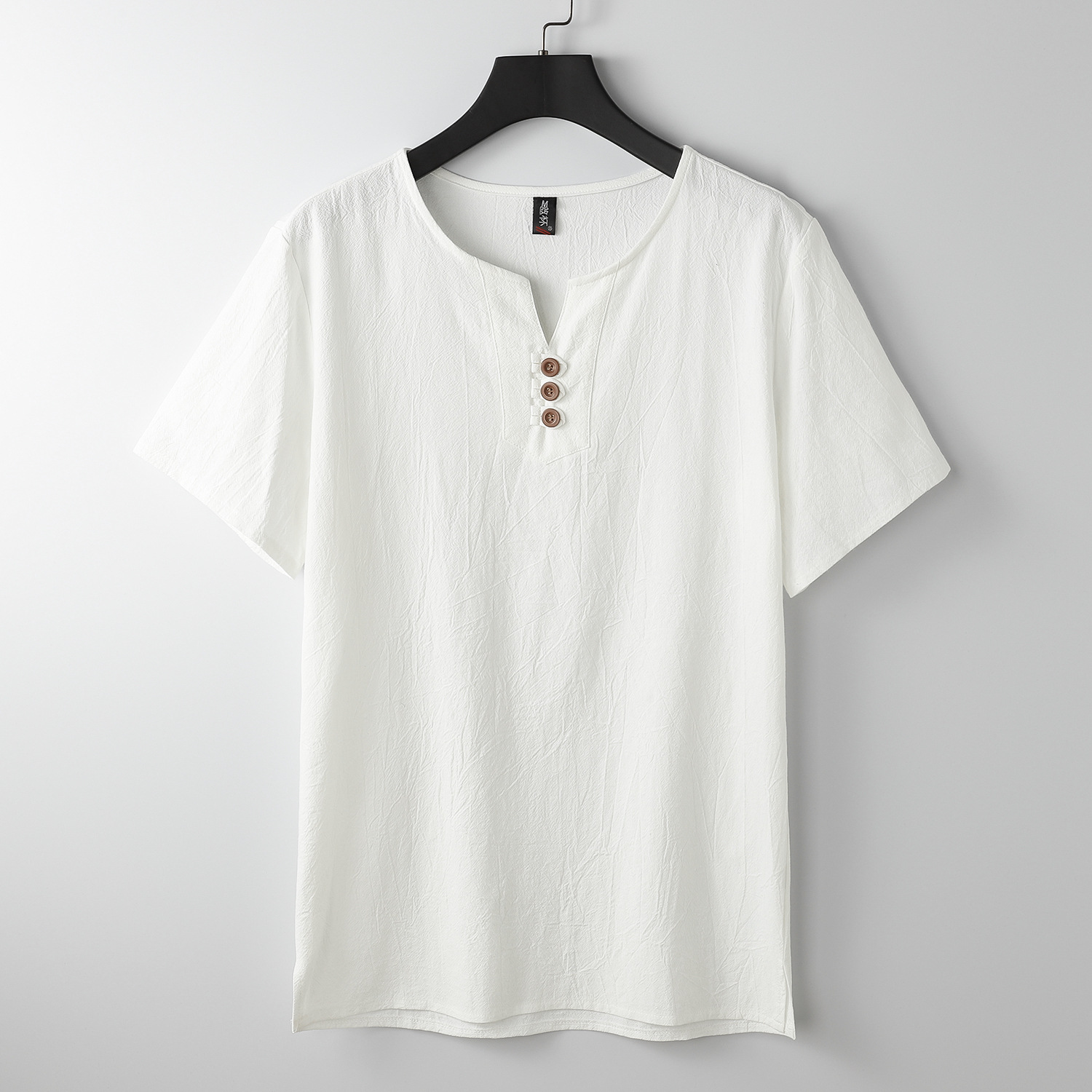Men's Vintage Button Casual Linen Blend Short Sleeve T-Shirt