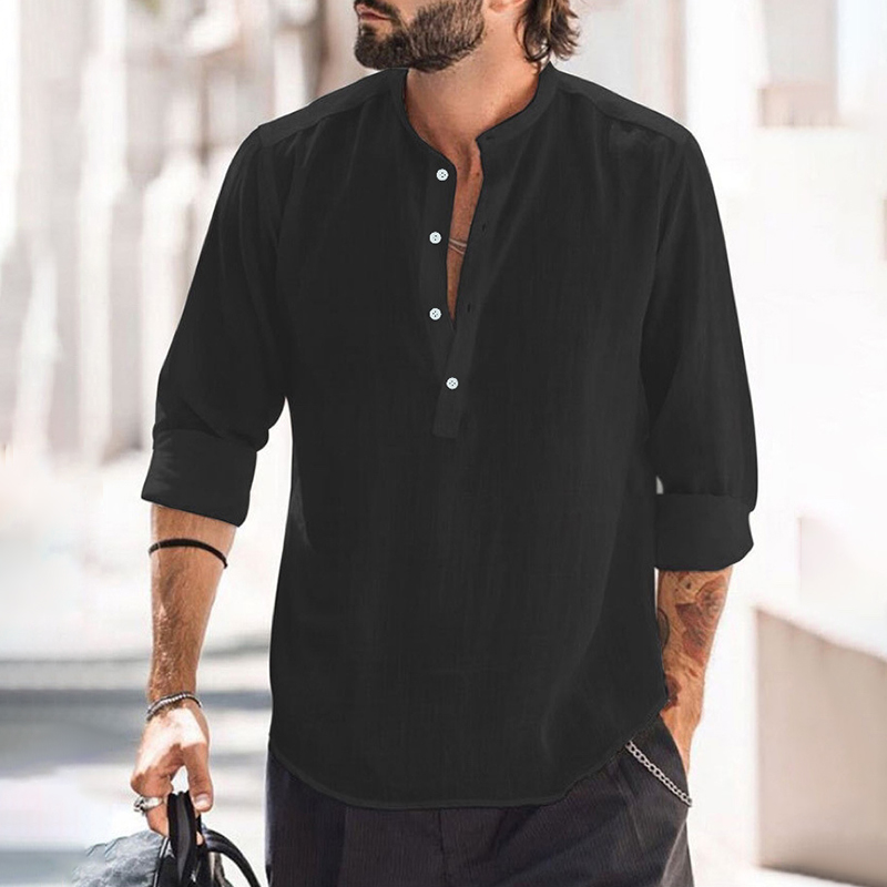 Men'S Vintage Buttoned Casual Linen Blend Shirt