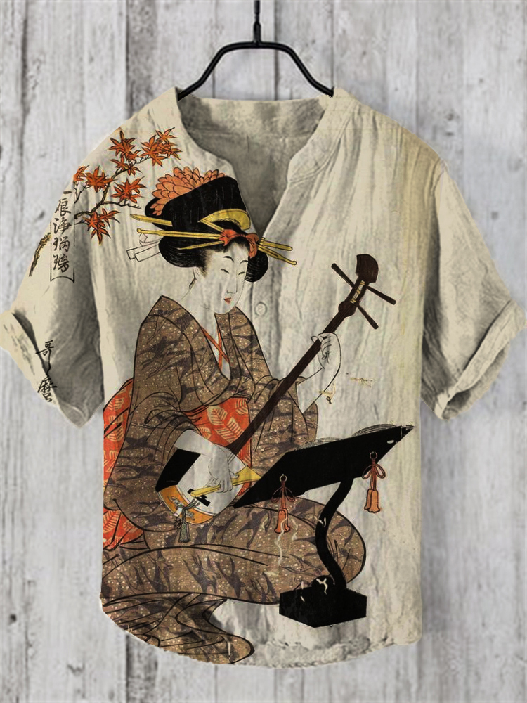 Men's Vintage Geishas Japanese Art Art Linen Blend Shirt