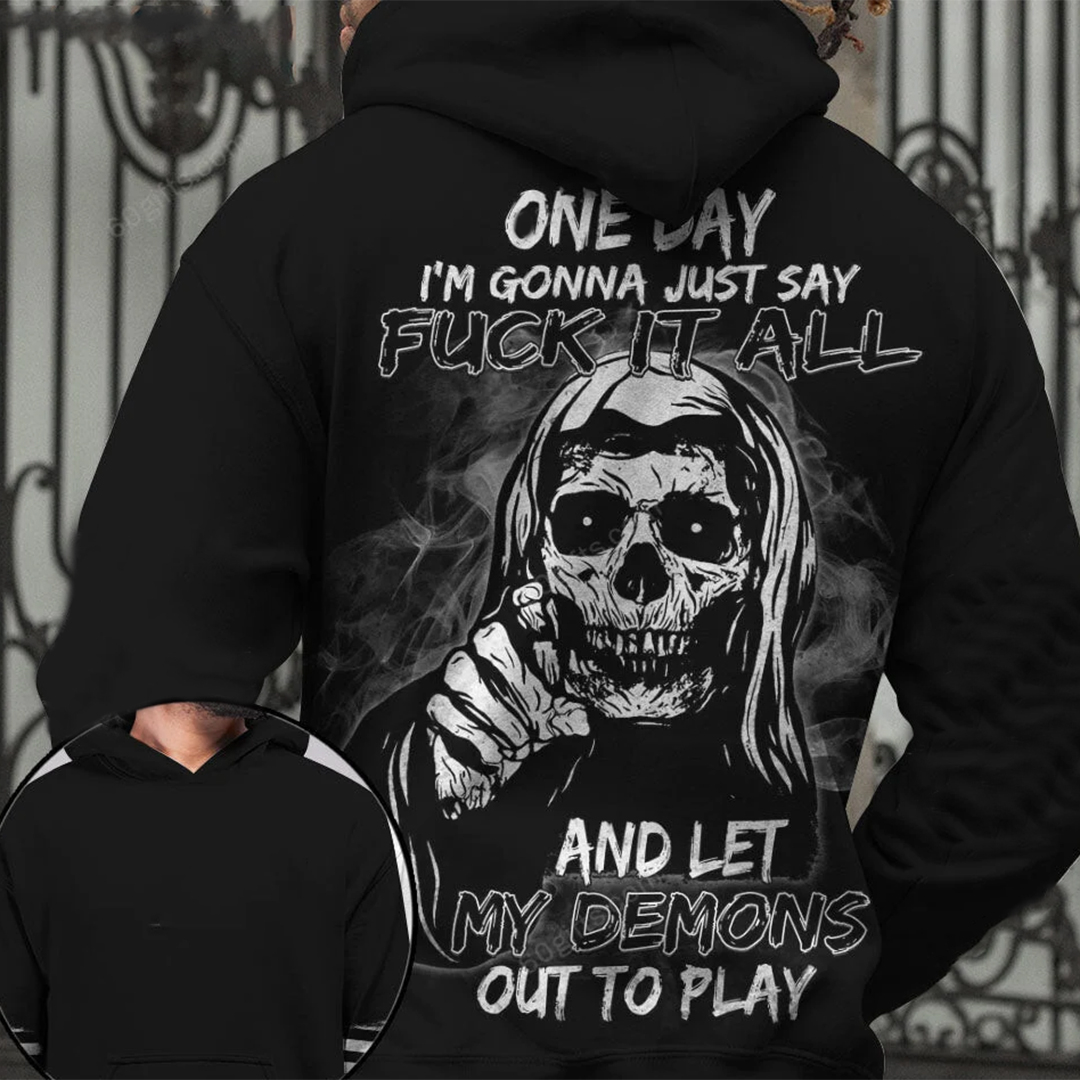 My Demons Skull All Over Printed Men's Long Sleeve Hoodies