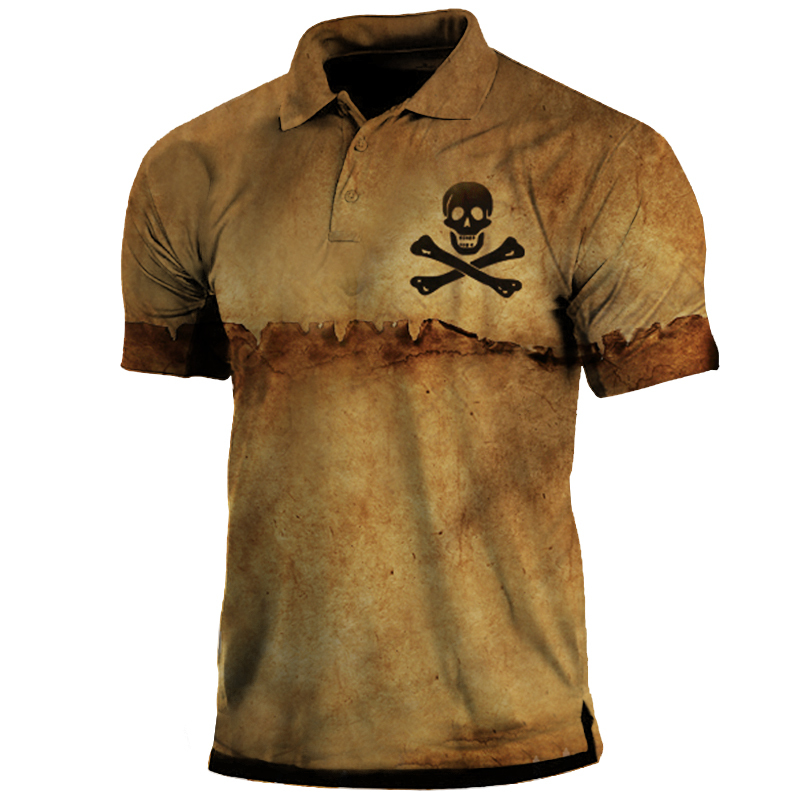 Pirate Skull Men's Vintage Print Polo Collar Short Sleeve T-Shirt