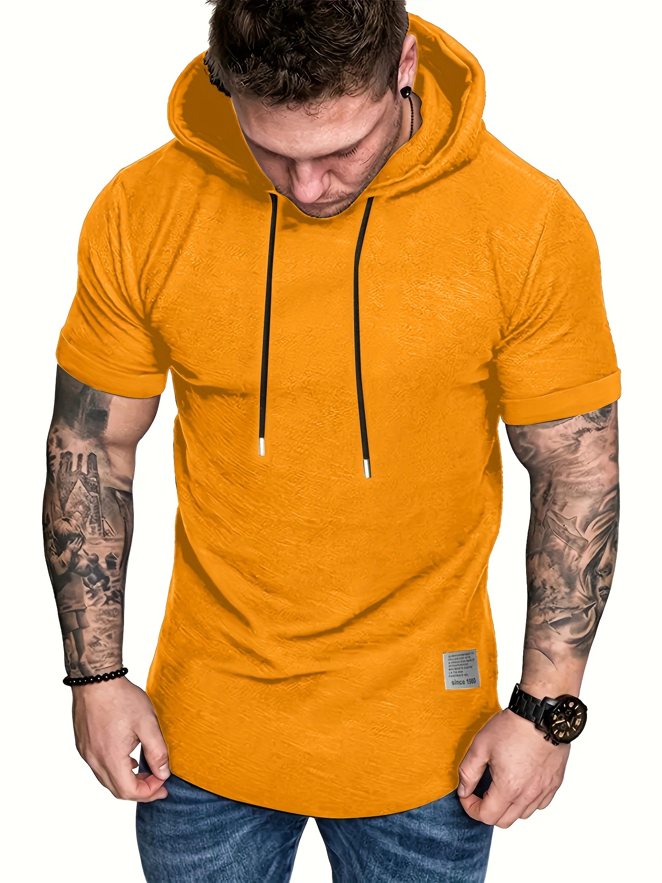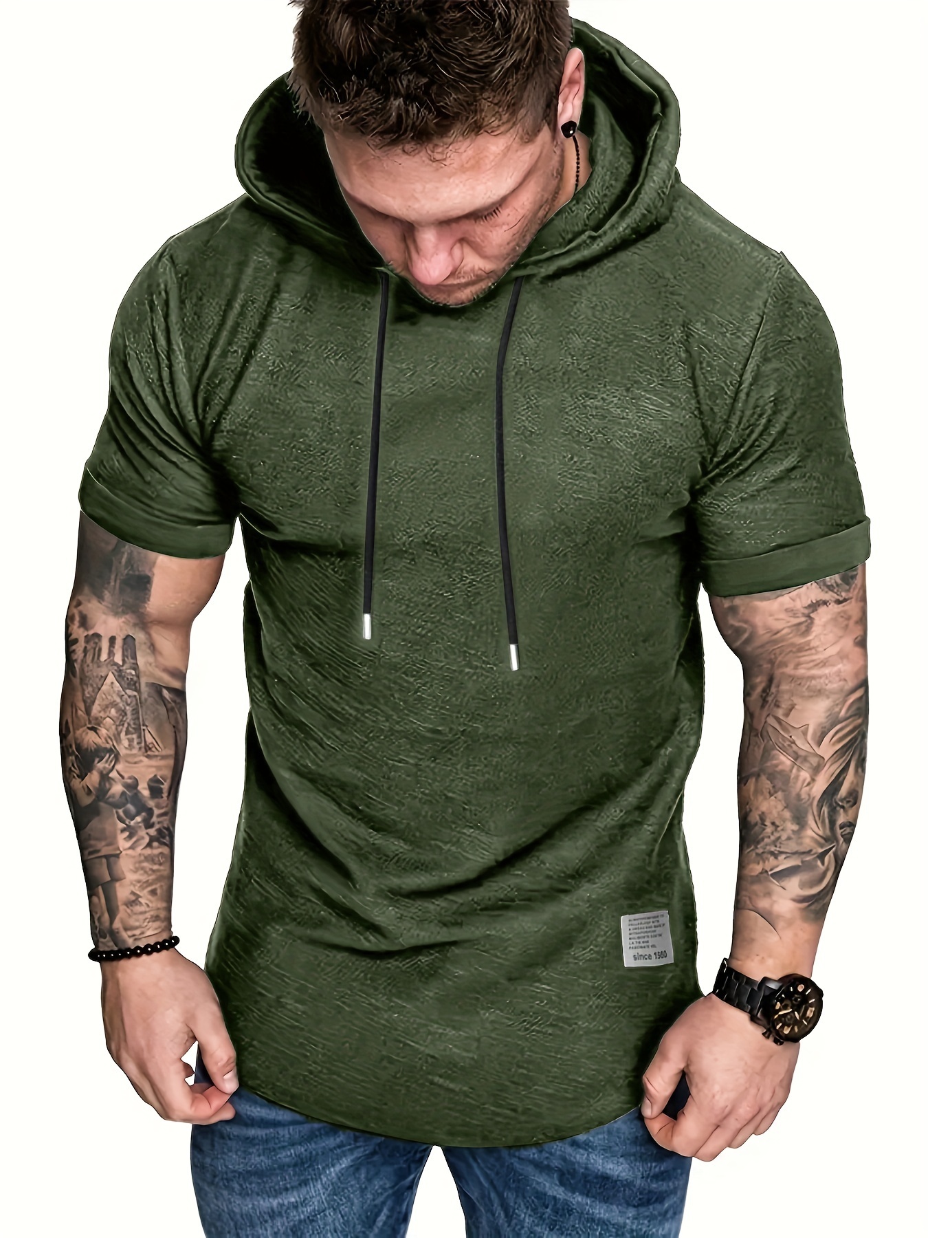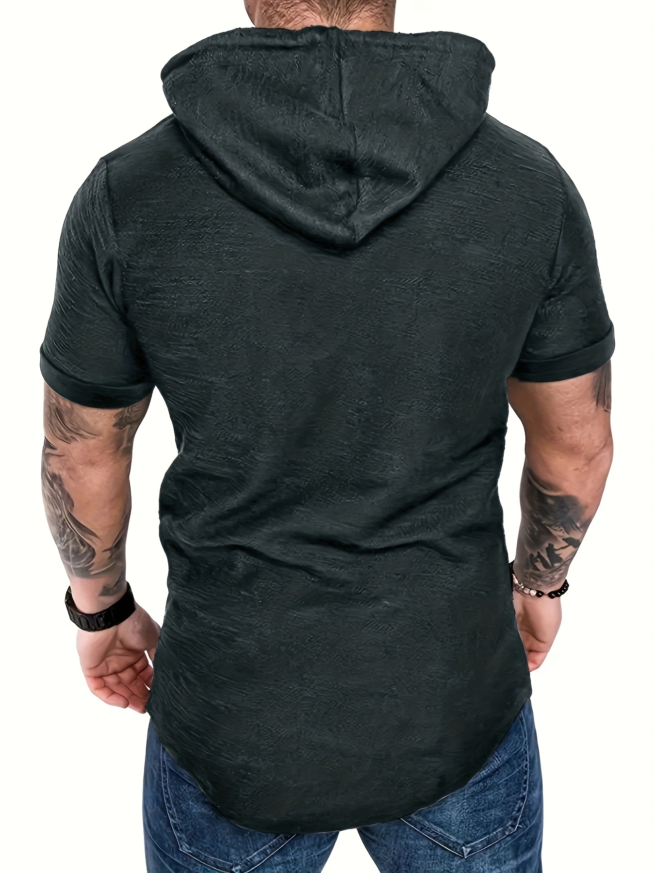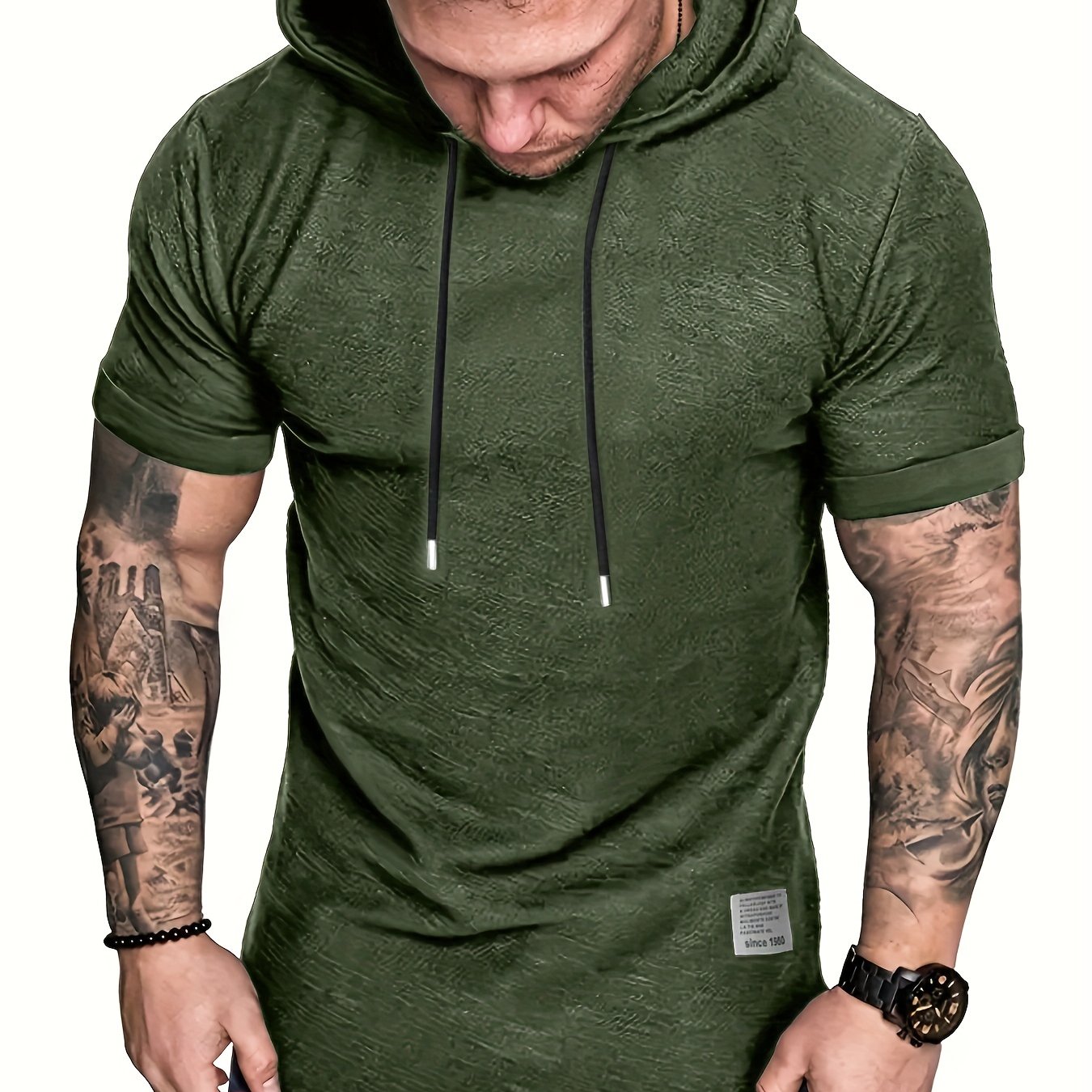 Plus Size Men's Basic Short Sleeve Hooded T-shirt, Summer Comfy Tops With Drawstring