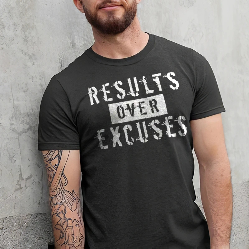 Results Over Excuses Letter Print Mens Casual Summer T-shirt