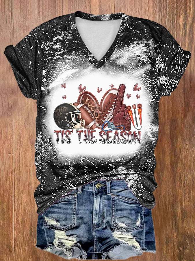 🔥🔥Retro V-neck Tie Dye Football Leopard Tis The Season Print T-Shirt