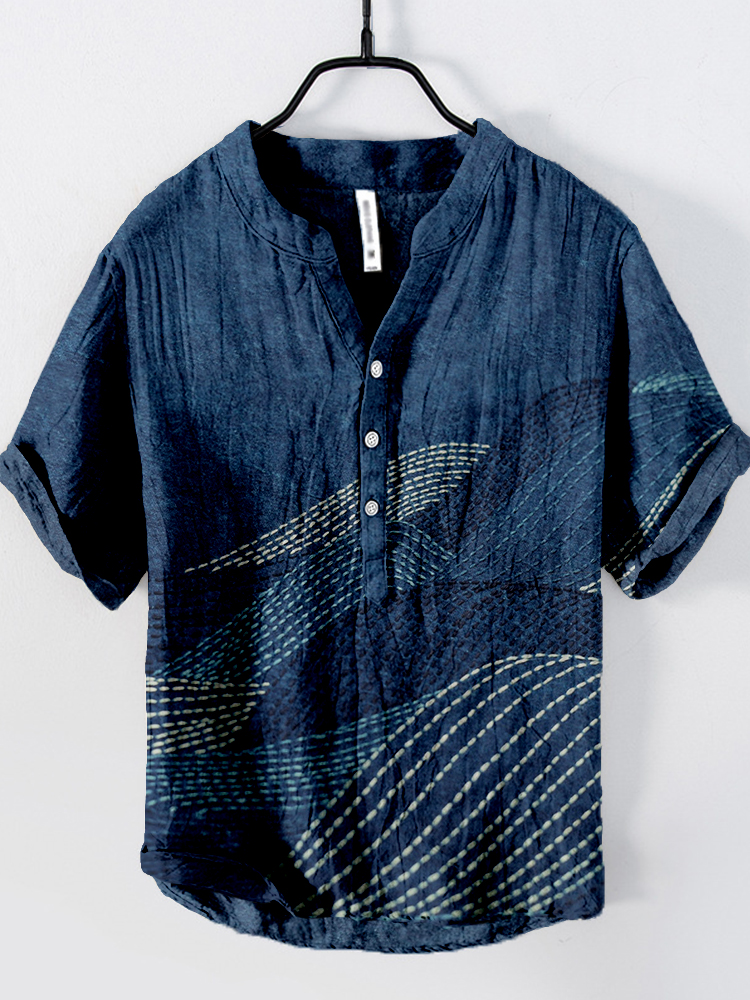 Traditional Japanese Sashiko Art Linen Blend Cozy Shirt