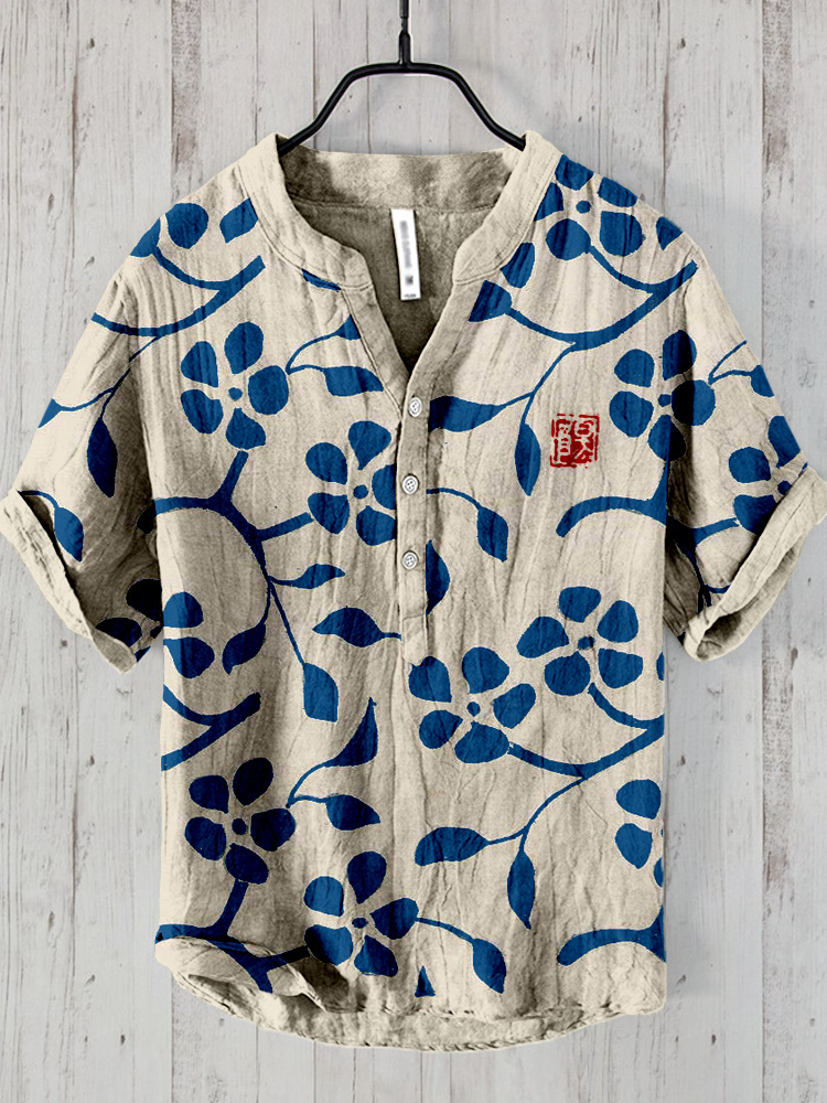 Vintage Flowers Japanese Lino Art Linen Blend Shirt
