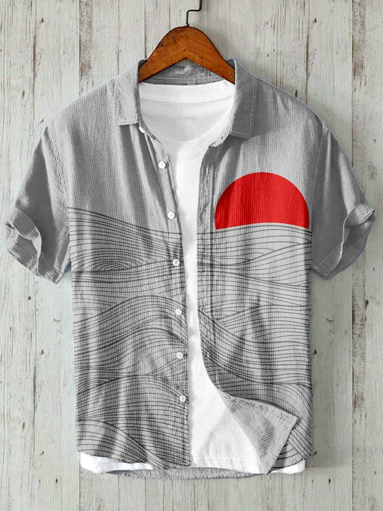 Vintage Japanese Waves & Sun Art Linen Blend Shirt