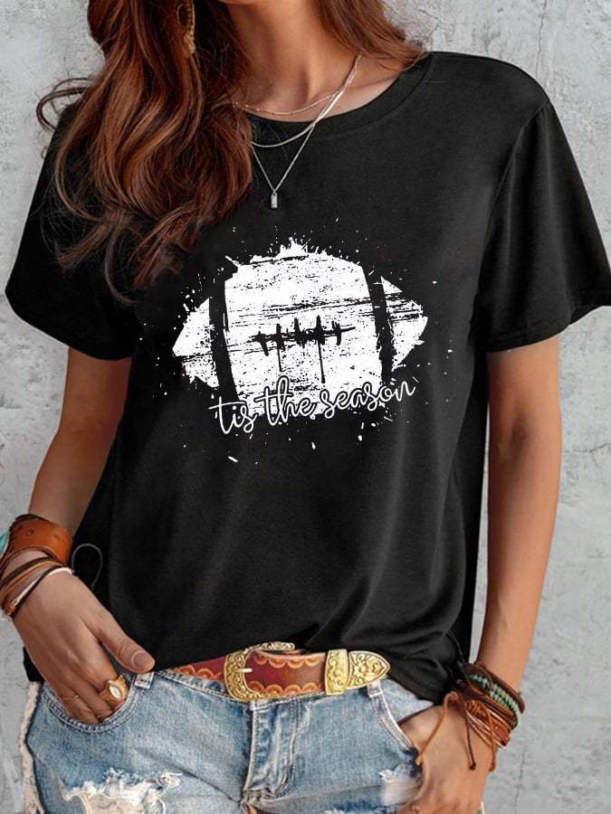 🔥🔥Women's Casual Round Neck "I Love Football" Print T-shirt