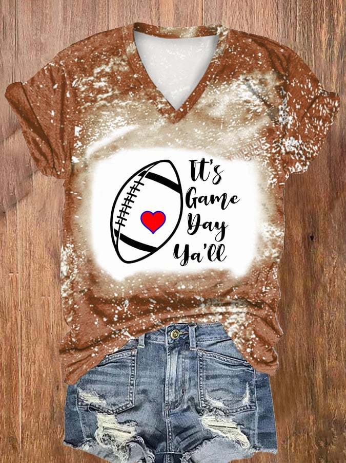🔥🔥Women's Football It's Game Day Y'all Print Casual T-Shirt