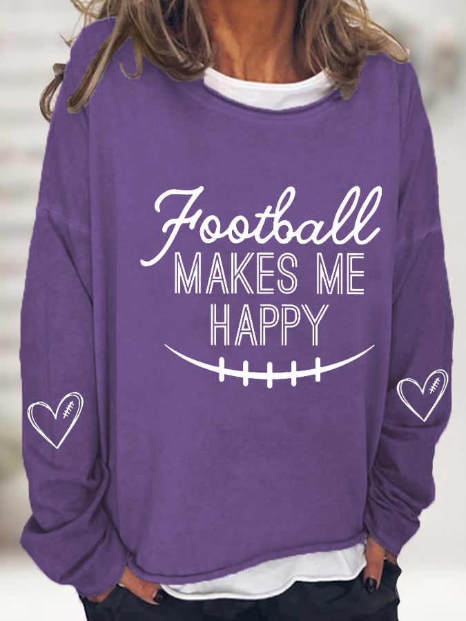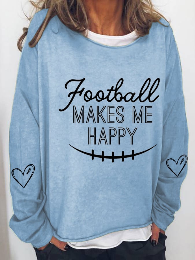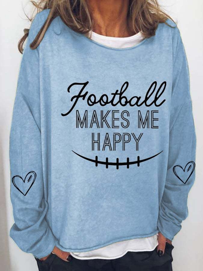 Women's Football Makes Me Happy Printed Casual Sweatshirt
