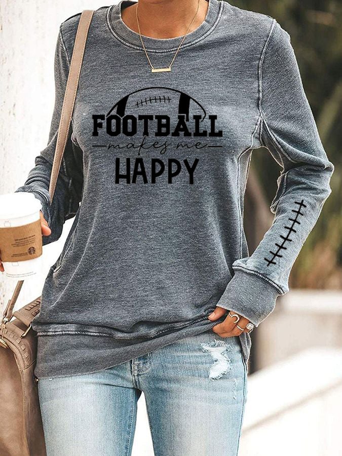 Women's Football Makes Me Happy Printed Sweatshirt