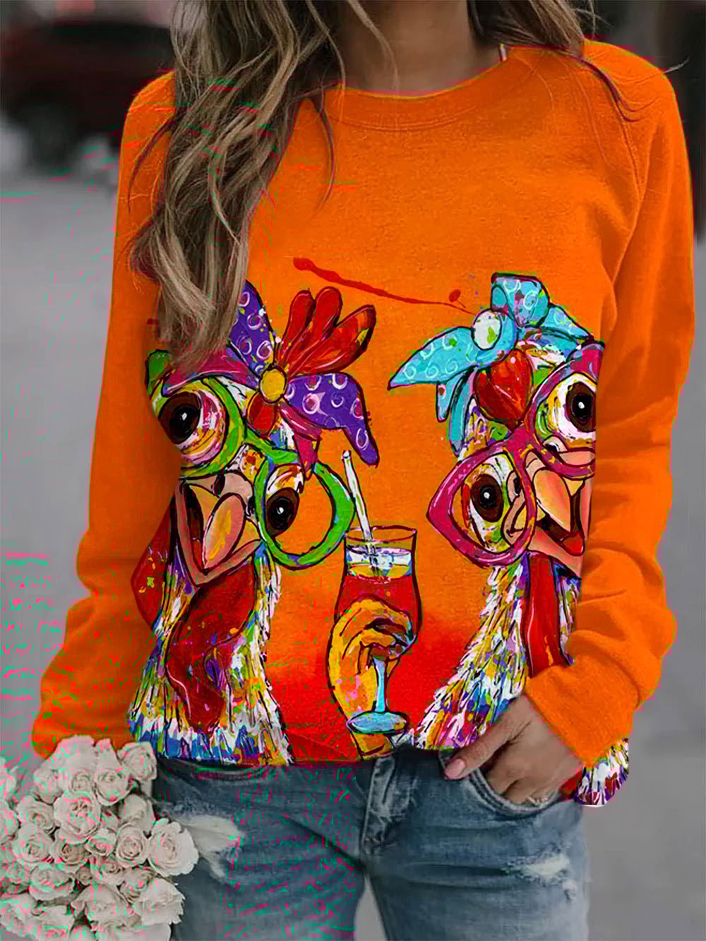Women's Funny Chicken Round Neck Long Sleeve Sweatshirt
