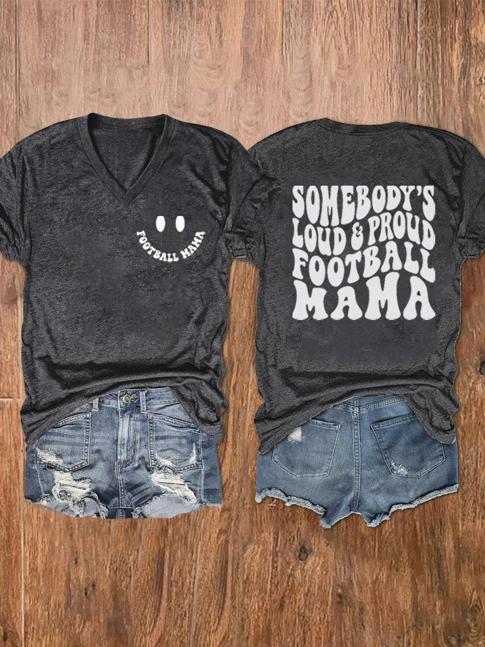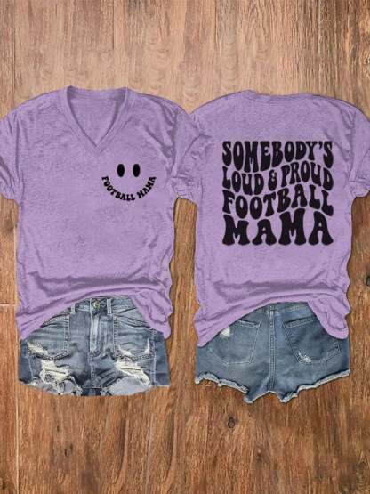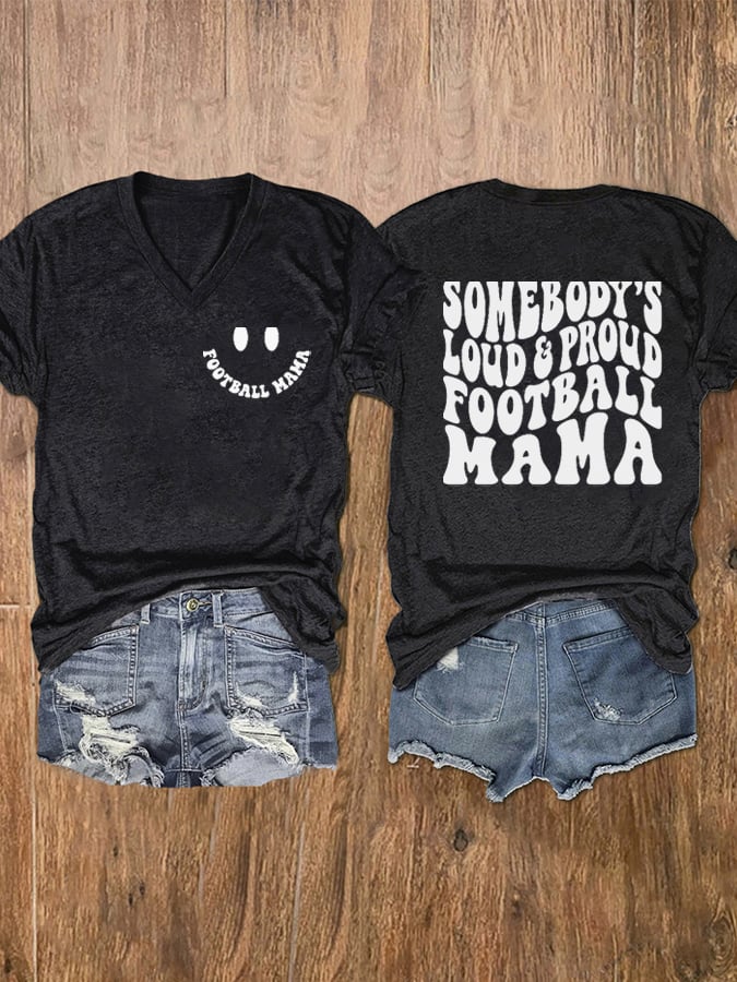 🔥🔥Women's Loud Proud Football Mama Print V-Neck T-Shirt