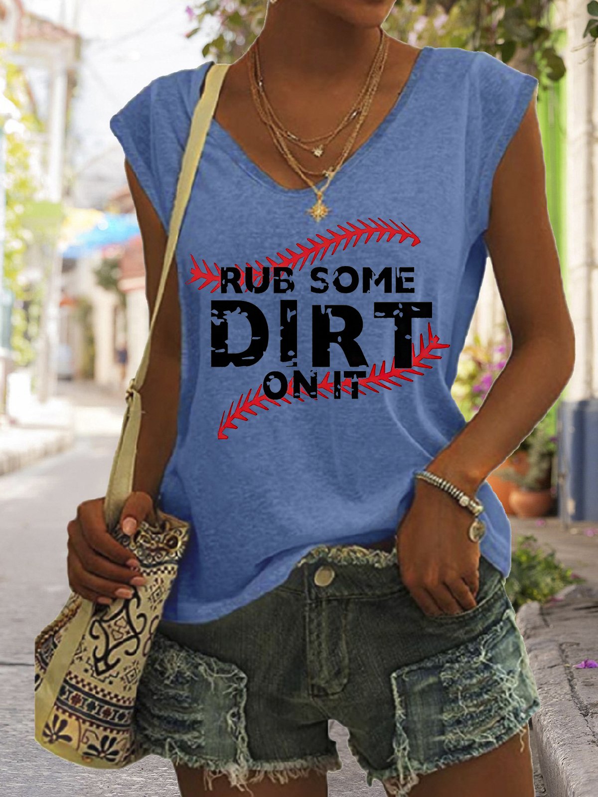 🔥🔥Women's Rub Some Dirt On It Baseball Print V-Neck Sleeveless Tee