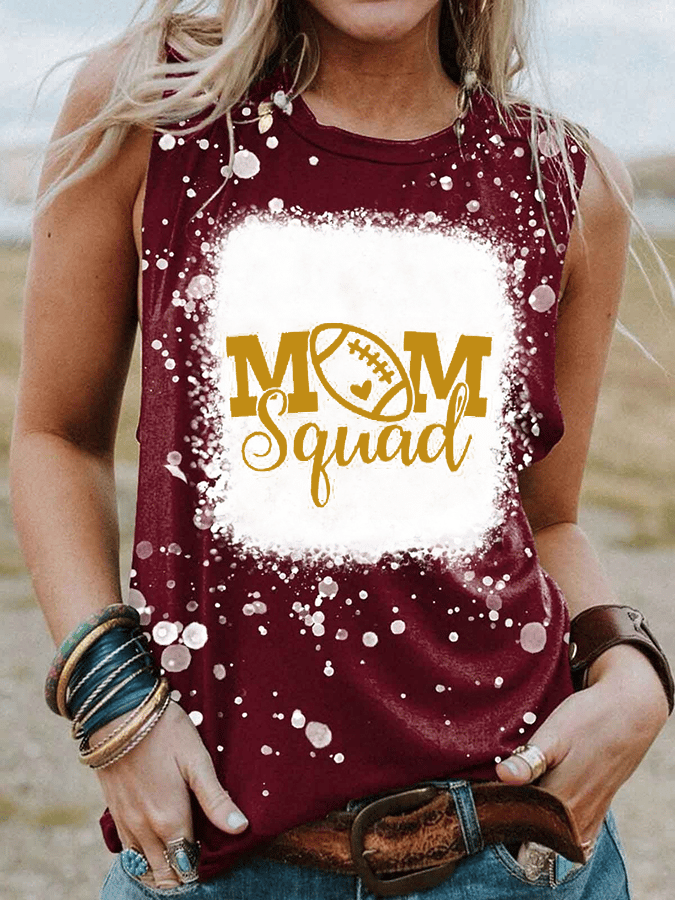 🔥🔥Women's Rugby MOM SQUAD Bleach Print Crew Neck Sleeveless T-Shirt