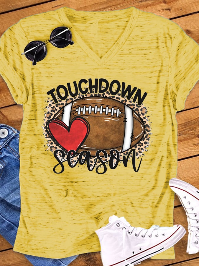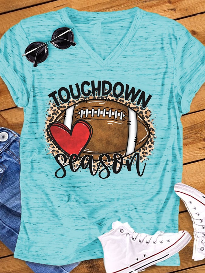 🔥🔥Women's Touchdown Season Leopard Football Graphic V-Neck Tee