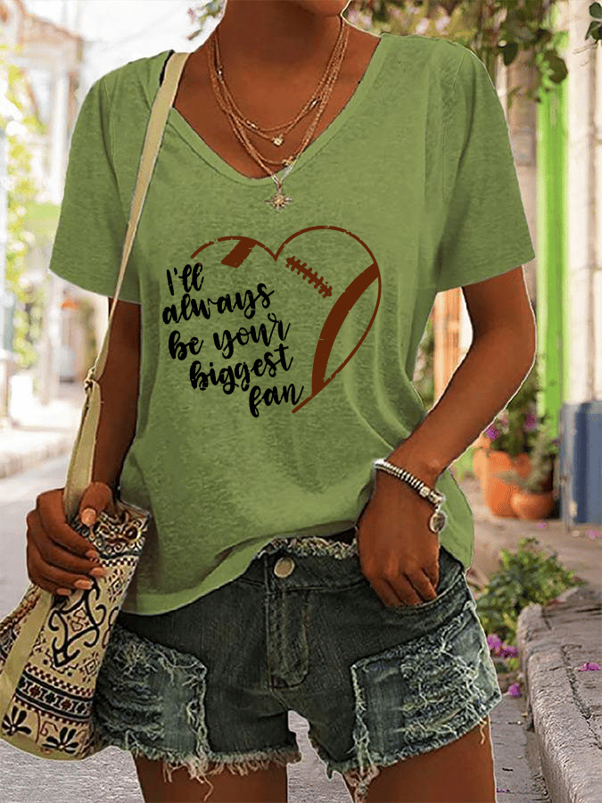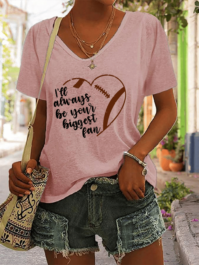 🔥🔥Women's V-Neck Heart Rugby I'LL ALWAYS BE YOUR BIGGEST FAN Print V-Neck Sleeveless T-Shirt
