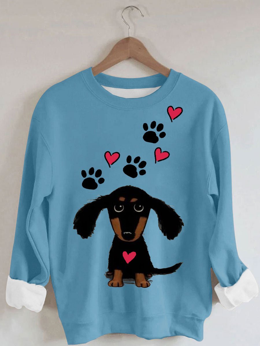 Women's Dog Print Long Sleeve Round Neck Sweatshirt