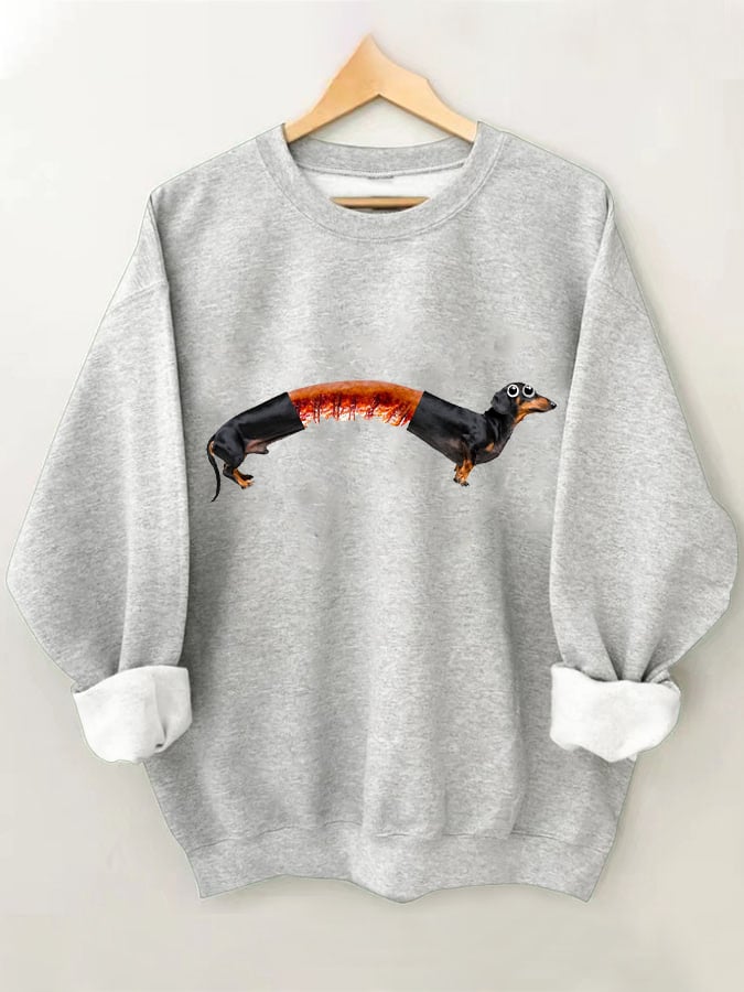Women's Dog Print Long Sleeve Round Neck Sweatshirt