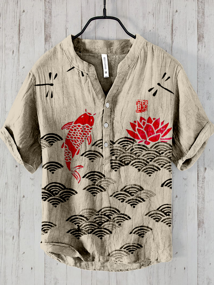 Koi Japanese Lino Art Linen Blend Cozy Shirt
